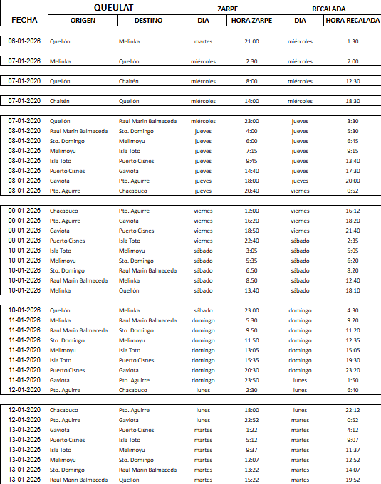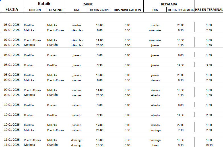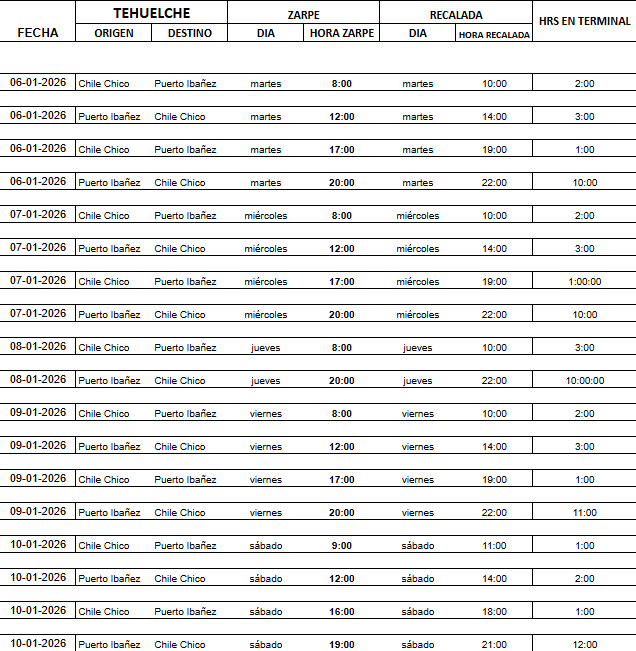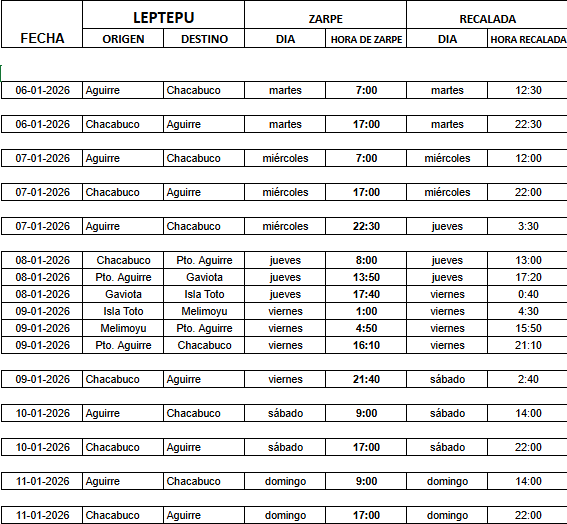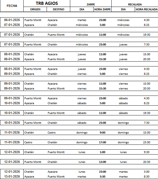 - Los pasajeros deben presentarse una hora antes del zarpe y vehículos dos horas antes del zarpe.