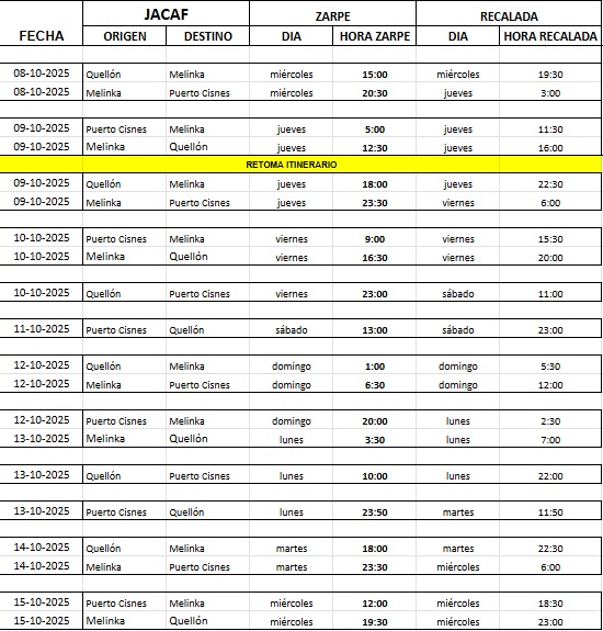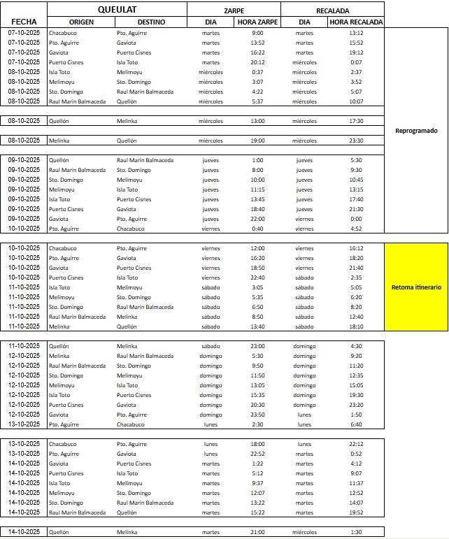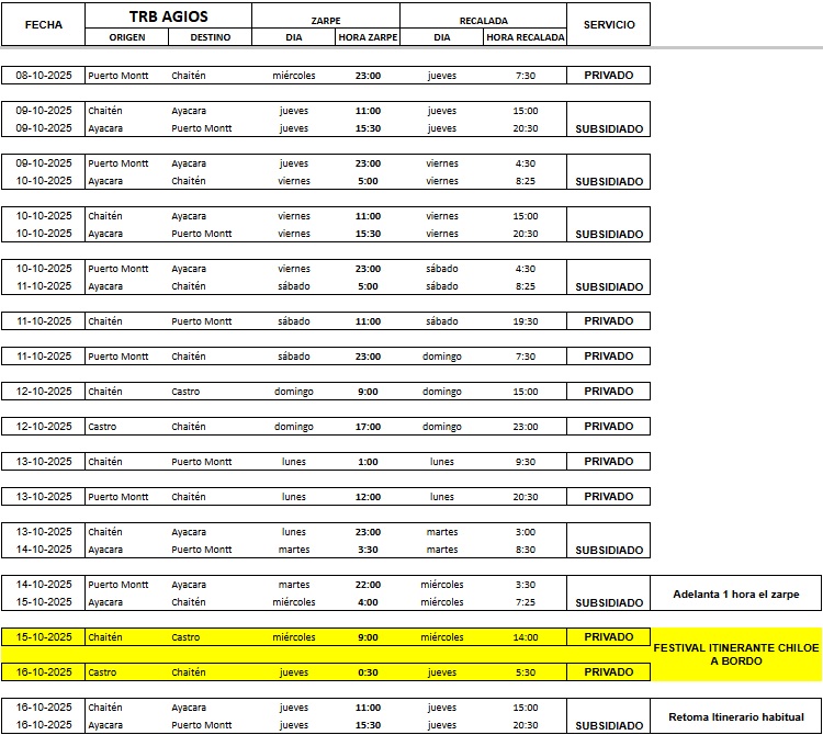 Actualización de itinerario del 08 al 15 de octubre de 2025