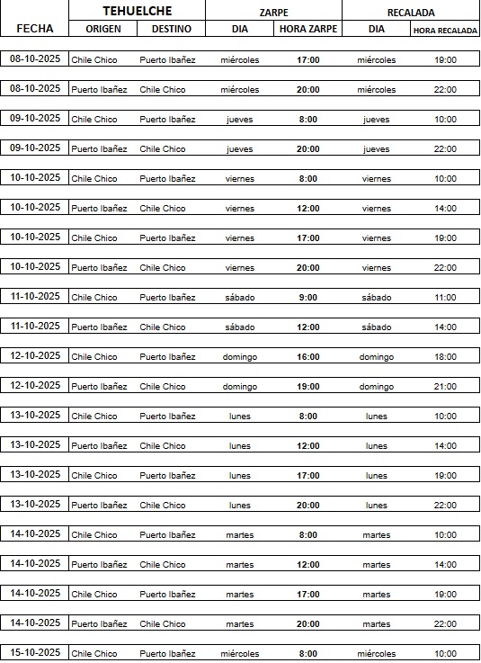- Los pasajeros deben presentarse una hora antes del zarpe y vehículos dos horas antes del zarpe.